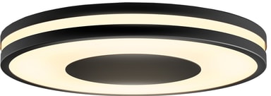 Ge ditt hem ett nytt utseende med justerbara taklampan Philips Hue Being svart taklampa. Du kan dimma ljuset efter dina önskemål med en praktisk dimmer och njuta av enkel kontroll med en Philips Hue-app för din smartphone, surfplatta eller bärbara dator.