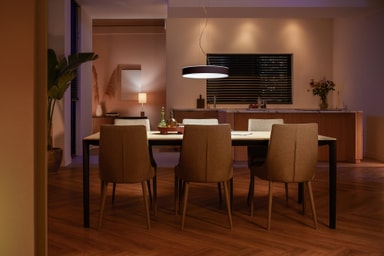 Philips Hue Enrave svart pendellampa kommer lysa upp ditt rum med en varm till kall vit belysning. Lampan är dimbar och du kan enkelt kontrollera den via den inkluderade Hue dimmer-knappen eller Bluetooth-appen.Läs mer om produkten