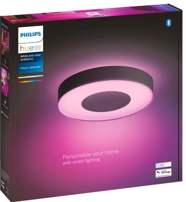 Philips Hue Infuse L svart taklampa kommer med RGB-färgspektrum och varmt till kallt vitt ljus för att fylla din interiör med atmosfäriskt och färgglatt ljusLäs mer om produkten