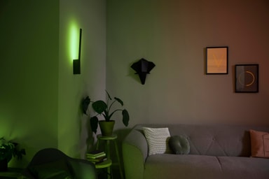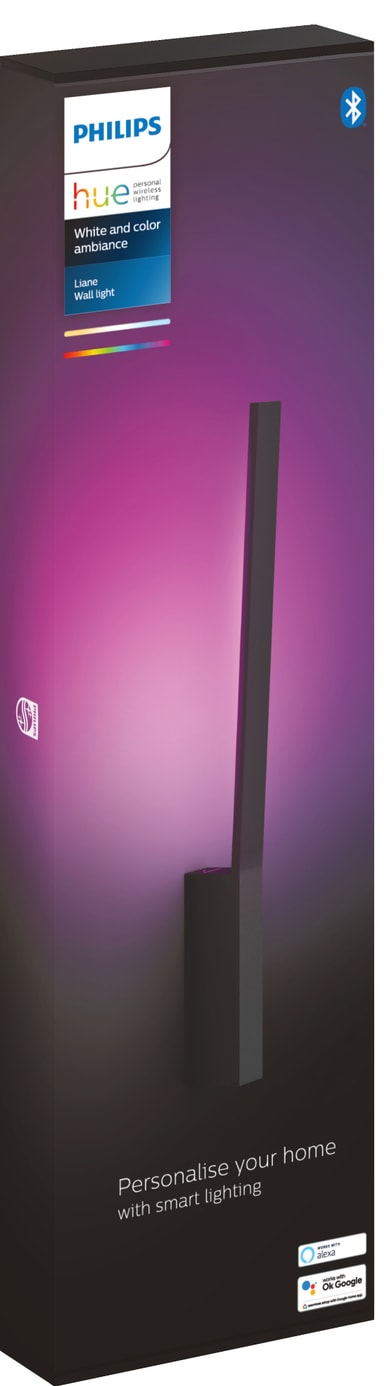 Dekorera dina väggar med Philips Hue Liane svart vägglampa 12W 24V och fyll ditt hem med otaliga färger eller mjuk vit belysning. Denna vägglampa med en tunn design är dimbar och kan kontrolleras via Philips Hue-appen.Läs mer om produkten