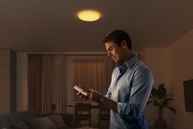 Ändra stämningen i rummet tack vare Philips Izso Plafond 24 W med fjärrkontroll och SceneSwitch-teknik. Den eleganta taklampan erbjuder mångsidiga belysningslösningar för sovrummet, hallen eller vardagsrummet. Tack vare den medföljande fjärrkontrollen kan du enkelt växla mellan tre färgtemperaturalternativ.