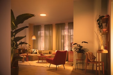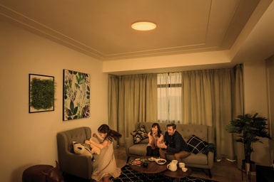 Med plafonden kan du enkelt växla belysningen i rummet tack vare de tre färgtemperaturerna, från varmt ljus på 2700K, neutralvitt på 4000K eller kallvitt ljus på 6500K.