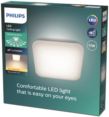 Philips Mauve taklampa 17 W i en elegant kvadratisk design ger jämn fördelning av det varmvita ljuset för din inredning, den möjliggör också enkel installation i taket.Läs mer om produkten