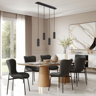 Tack vare de längdjusterbara kablarna är hänglampan inte bara lämplig för varje takhöjd, utan möjliggör också en individuell look helt efter din smak. Den moderna ljuskällan skapar en jämn belysning och är särskilt bra för längre matbord eller köksbänkar.