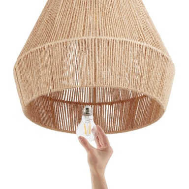 Tack vare kombinationen av naturliga jutefibrer och robust stålram imponerar den inomhuslampan inte bara visuellt, utan också med sin stabilitet och tålighet. Särskilt praktiskt: det medföljande monteringsmaterialet möjliggör en enkel installation för snabb användning.