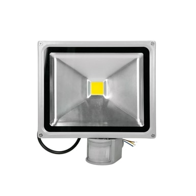 Omfattning av leverans: 1 x 30 W LED-strålkastare med rörelse kallt vitt Teknisk information: Skydd: IP65 (skyddad mot vattenstrålar) Hölje: Aluminium injektion Vinkel: ca 120 ° Spänning: 220-240V AC Effekt: 30W Strömförbrukning: Max: