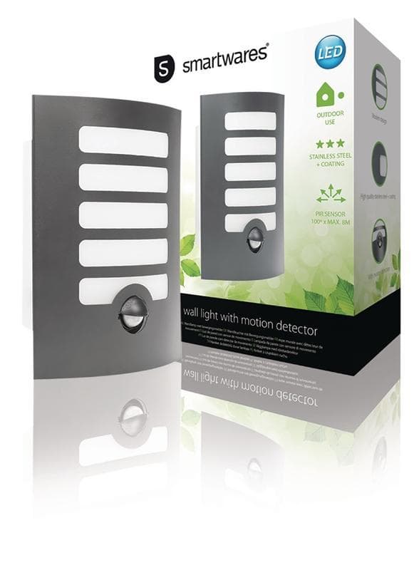 Smartwares GWI-172-HG Wall light - High quality aluminum - Motion detector Never come home in the dark again and also create a modern look with the Smartwares GWI-172-HG Wall light. Thanks to the high quality aluminum and integrated motion detector the wall light is perfectly suitable for outdoor use.