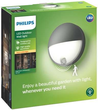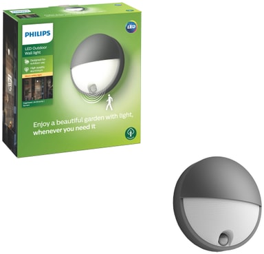 Lys upp vägen till ditt hus med det varma diffusa vita ljuset från Philips Capricorn vägglykta 5,5 W och njut av en perfekt upplyst väg hem varje gång du kommer hem sent tack vare den integrerade IR-rörelsesensorn. Lyktan är också väderbeständig med en IP44-klassning.