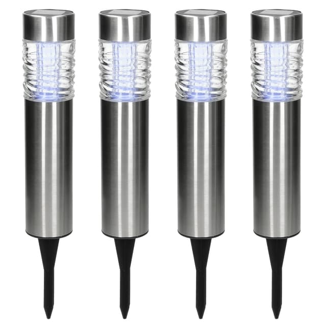 Skapa trådlöst med denna vackra uppsättning av fyra LED-sol lampor din egen atmosfär i trädgården eller på balkongen. Lamporna gjord av väderbeständig rostfritt stål och glas är utrustade med moderna solenergiteknik och lång livslängd lysdioder. Bjud in till dag och ge henne ljus förvaras mörkt igen. Tack vare skyddsklass IP44, de är vattenavvisande och därför idealisk utomhusbruk.