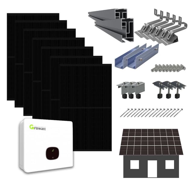Paketet innehåller * Solpanel:Canadian Solar - HiKu6 All Black 395W - 12 st. * Inverter:Growatt 1-fas 230V 3,6KW Inverter - 1 st. * Fästmaterial:Bisols EasyMount för sadeltak med tegel. Paketet består av högkvalitativa produkter och gör dig snabbt redo att både använda och sälja egenproducerad el. Den innehåller allt du behöver med undantag av solcellskabeln från panelerna till växelriktaren och MC-4-kontakter med verktyg. Innehåller det du behöver för att fördela solpanelerna i 2 rader och varje rad är avsedd för stående paneler. Takkroken har trippeljustering och passar de flesta tegeltak. Om du ändrar konfigurationen, t.ex. genom att det är ett rör, kvist eller liknande kommer detta att förändra hur mycket fästmaterial du behöver. Antalet fästelement i förpackningen är hämtat från Bisol och är en generell beräkning.