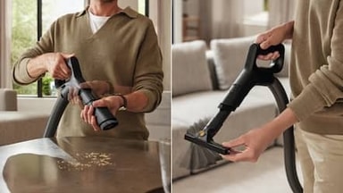 Miele Guard L1 är utrustad med ett innovativt 2-i-1-munstycke – så att du snabbt och enkelt kan växla mellan olika rengöringsuppgifter. Det kombinerar ett extra brett möbelmunstycke och ett fogmunstycke i en platsbesparande design – för enkel rengöring av klädsel och svåråtkomliga områden. Tack vare den praktiska förvaringsplatsen i den bakre delen av dammsugaren är den alltid redo att användas.