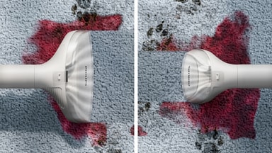 400-watts mattrengöraren har en 1600 ml vattentank som levererar rent tvålvatten för att hantera svåra lerfläckar och spill på mjuka ytor.