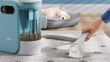 400-watts Philips 3000-serien mattrengörare XW3193/11 har en räckvidd på 6,6 meter och en tank på 1600 ml. Den använder PowerCyclone Aqua-teknik för att separera rent och smutsigt vatten för effektiv mattrengöring.Läs mer om produkten