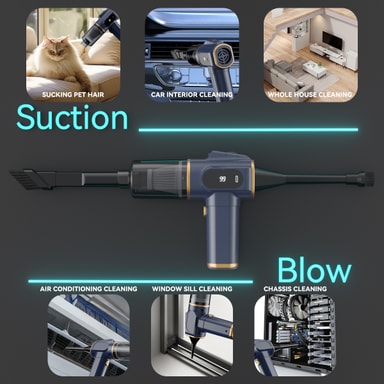 Sladdlös bekvämlighet: Njut av friheten med sladdlös drift med vår handhållna dammsugare. Dess lätta design och ergonomiska handtag ger bekväm manövrerbarhet, vilket gör att du kan nå varje skrymsle och vrå i din bil utan krångel med sladdar. Det uppladdningsbara batteriet erbjuder förlängd drifttid, så att du kan slutföra dina rengöringsuppgifter utan avbrott. Denna sladdlösa design gör den otroligt enkel att använda och förvara, vilket ger ultimat bekvämlighet för rengöring på språng.