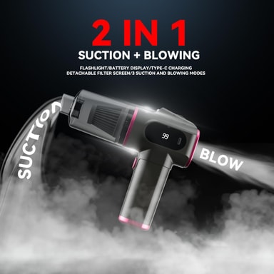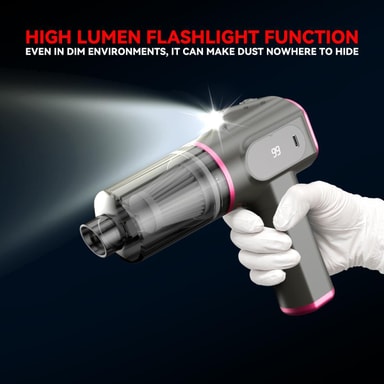 Sladdlös bekvämlighet: Njut av friheten med sladdlös drift med vår handhållna dammsugare. Dess lätta design och ergonomiska handtag ger bekväm manövrerbarhet, vilket gör att du kan nå varje skrymsle och vrå i din bil utan krångel med sladdar. Det uppladdningsbara batteriet erbjuder förlängd drifttid, så att du kan slutföra dina rengöringsuppgifter utan avbrott. Denna sladdlösa design gör den otroligt enkel att använda och förvara, vilket ger ultimat bekvämlighet för rengöring på språng.