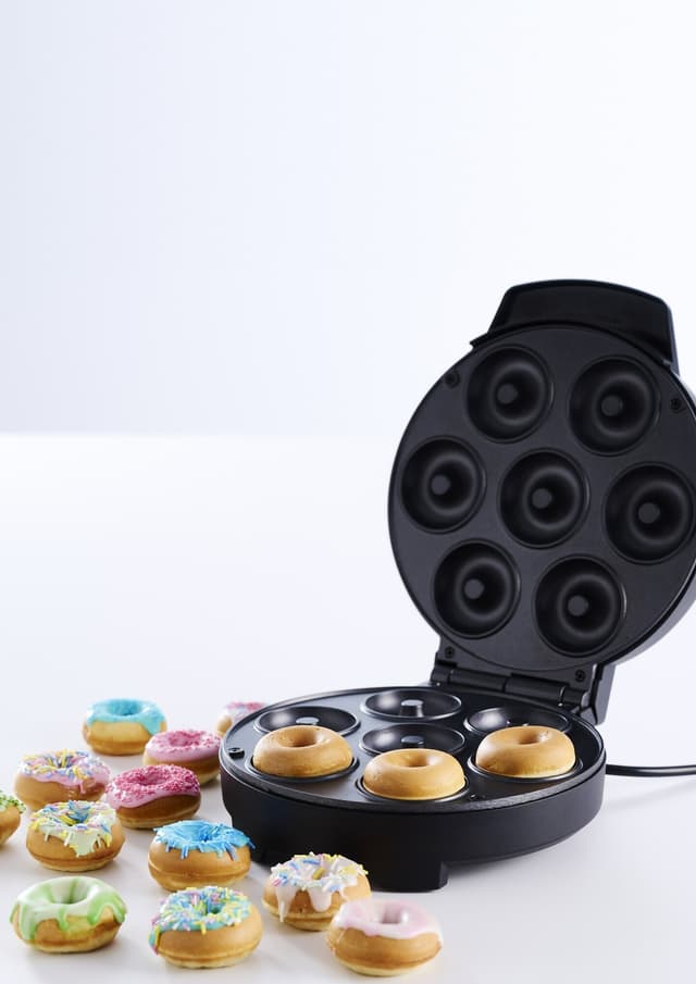 Donut Maker är en praktisk och enkel munkmaskin som ger dig möjligheten att tillaga fräscha donuts hemma på ett kick. Med en effekt på 1000W kan du snabbt och enkelt baka upp till 7 donuts åt gången. Maskinen har en praktisk nonstick-beläggning som gör det enkelt att rengöra efter användning. Fasta tallrikar i bakelit säkerställer en jämn värmefördelning och du kan vara säker på att dina donuts alltid blir perfekt gräddade.