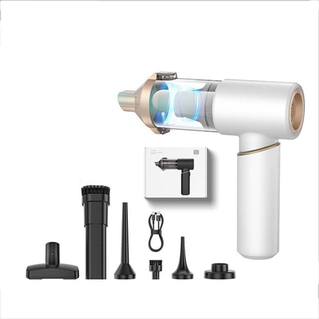 Sladdlös och bärbar design: Njut av friheten med sladdlös rengöring med denna bärbara dammsugare. Dess uppladdningsbara batteri gör att du kan rengöra utan att vara bunden till ett eluttag, vilket gör den idealisk för biltvätt, rengöring av trånga utrymmen och utomhusbruk. Den kompakta och lätta designen säkerställer bekväm hantering och enkel förvaring i bilens bagageutrymme, handskfack eller hemmaförvaring. Ta med dig denna trådlösa dammsugare vart du än går och upprätthåll en ren och snygg miljö utan ansträngning. Det långvariga batteriet ger gott om rengöringstid, vilket gör att du kan ta itu med flera rengöringsuppgifter på en enda laddning.
