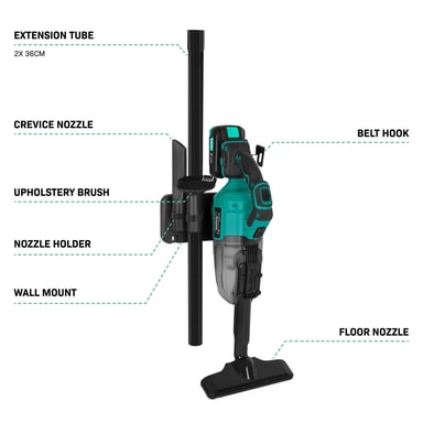 Med förlängningsrör upp till 1,22 meter kan du använda den som skaftdammsugare, handdammsugare eller som ett smidigt komplement till din vanliga dammsugare.