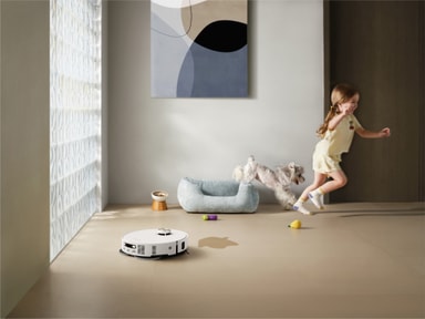 Dammsugaren har en snygg, lågprofilerad design som lätt tar sig under möbler, i kombination med en avancerad dockningsstation för en helautomatisk städlösning.