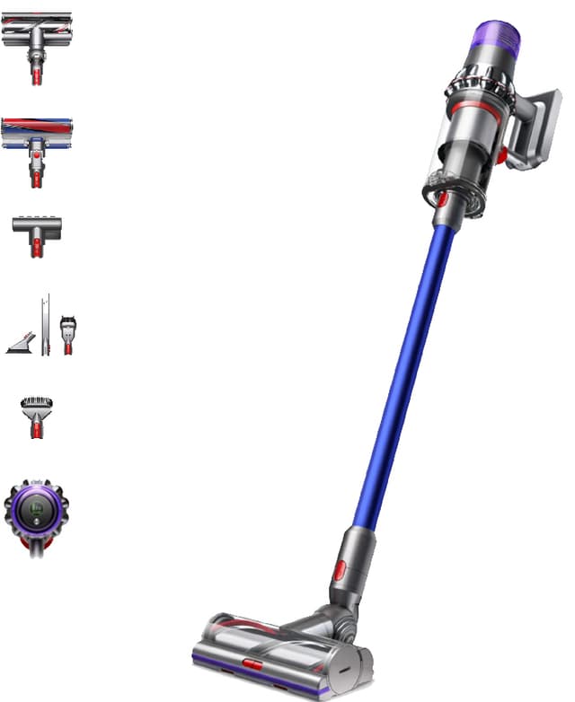 Genom att motorn, behållaren och cyklonerna är anpassade i en rak linje, kan luften inuti dras mer effektivt, vilket ger 20 % mer sugkraft än Dyson V8 dammsugare.