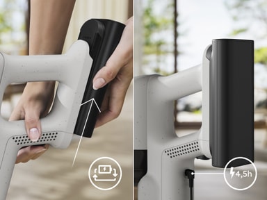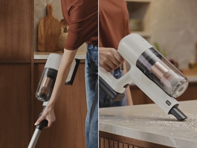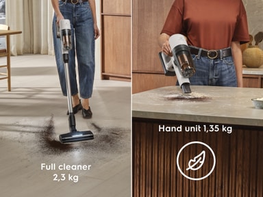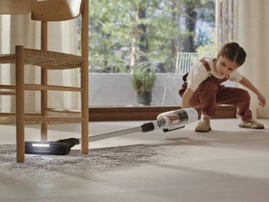 Fullpackad med kraft och kompakt i designen, med en upplevd vikt på endast 1,35 kg i handen, är den här dammsugaren skapad för enkel och flexibel användning. Nå varje hörn – från golv till tak – och växla smidigt mellan olika rengöringsuppgifter med hjälp av snabbkopplingarna.