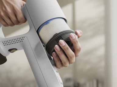 Det avancerade 6-stegs HEPA-filtreringssystemet fångar upp till 99,99 %* av partiklar mellan 0,3 och 10 mikron, inklusive damm, pollen och djurmjäll. Det nya eftermotorfiltret förbättrar filtreringen ytterligare och säkerställer att renare luft släpps ut i hemmet.