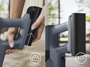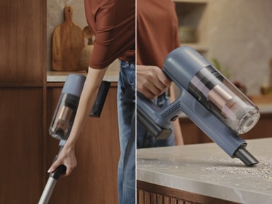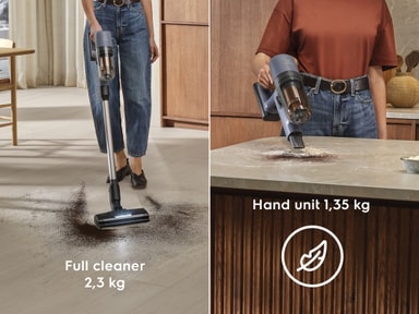 Fullpackad med kraft och kompakt i designen, med en upplevd vikt på endast 1,35 kg i handen, är den här dammsugaren skapad för enkel och flexibel användning. Nå varje hörn – från golv till tak – och växla smidigt mellan olika rengöringsuppgifter med hjälp av snabbkopplingarna.
