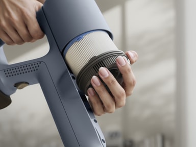 Det avancerade 6-stegs HEPA-filtreringssystemet fångar upp till 99,99 %* av partiklar mellan 0,3 och 10 mikron, inklusive damm, pollen och djurmjäll. Det nya eftermotorfiltret förbättrar filtreringen ytterligare och säkerställer att renare luft släpps ut i hemmet.