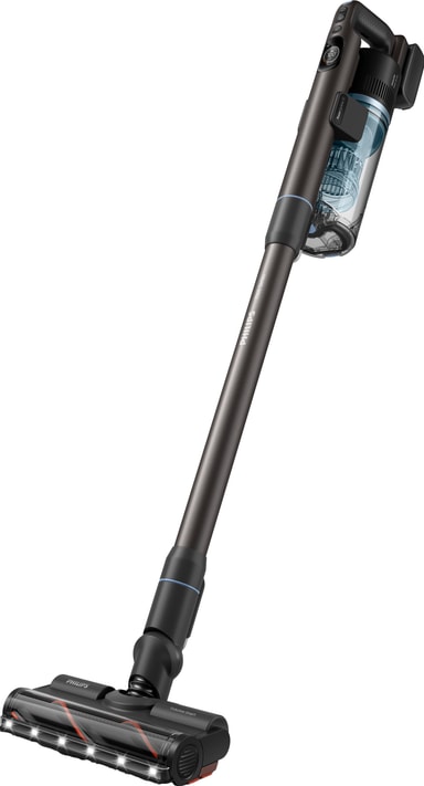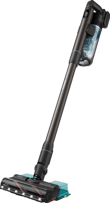 Philips 7000 Series SpeedPro Max Aqua sladdlös dammsugare XC7163/01 erbjuder upp till 80 minuters drifttid, smart LED-guidad rengöring, anti-hår-teknik, kantrengöring och en klickbar Aqua-modul för snabb våttorkning.Läs mer om produkten