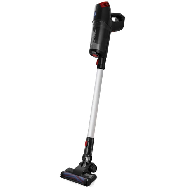 Skaftdammsugaren är stilrent designad i svart med ett teleskoprör i silver och är uppladdningsbart.