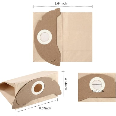 Kostnadseffektiv rengöringslösning: Spara pengar på underhåll av dammsugare med detta värdepaket med 10 pappersdammsugarpåsar. Dessa påsar erbjuder ett prisvärt alternativ till dyra märkesalternativ, utan att kompromissa med kvalitet eller prestanda. Pappersmaterialet är utformat för att vara starkt och rivtåligt, vilket säkerställer att påsarna tål regelbunden användning. Genom att välja dessa kostnadseffektiva påsar kan du hålla din Kärcher WD2 Premium, MV2, WD 2.200 till WD 2.550-serien dammsugare igång smidigt utan att spräcka banken. Njut av ett rent hem och en hälsosam budget med dessa viktiga dammsugartillbehör.