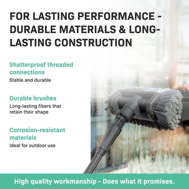 Denna utdragbara tvättborste levereras komplett och redo att användas direkt. Med den mångsidigt användbara borsten kan du t.ex. rengöra fasadbrädor, sluttande tak, väggar och solpaneler. Borsten är också perfekt för rengöring av (stora) fordon. Borstens fibrer är tillräckligt mjuka för att inte skada någon yta men tillräckligt starka för att effektivt avlägsna smuts. Borsten behåller sin form och är väl skyddad mot missfärgning.