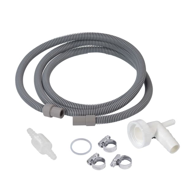 Avloppsslang för kondenstumlare. För anslutning av kondenstumlare till en sifonanslutning. Högtrycksresistent (krossmotstånd)kit för anslutning av kondenstumlare till en sifonanslutning - man slipper helt den tråkiga tömningen av vattenuppsamlingsbehållaren. Består av: 1 x avloppsslang 1,5 m, 1 x sifonanslutning med tätning, 3 x slangklämmor, 1 x backventil tekniska detaljer typ av anslutning straight material polyeten (pe) maximal temperatur -40 ° c / +70 ° c innerdiameter 10 mm slanglängd 1,5 m utvändig diameter 15 mm färg grå användning kondenstumlare
