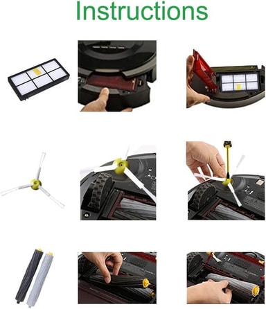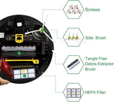 Omfattande rengöring: Satsen innehåller allt du behöver för att upprätthålla din Roombas rengöringsprestanda. Den innehåller huvudborstar, filter, sidoborstar och skruvar, vilket säkerställer en noggrann rengöring av ditt hem.