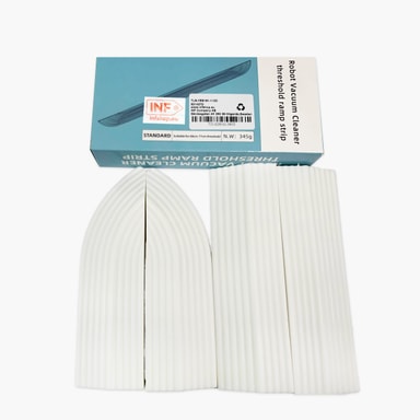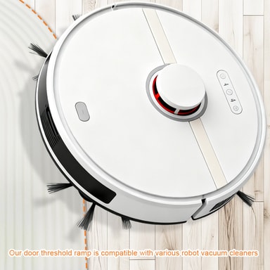 Sats för dörrtröskelramper som fungerar för olika robotdammsugare. Rampen är mycket lätt att placera och ta bort igen. Med dessa övergångslister hjälper du robotdammsugaren att enkelt ta sig över höga dörrtrösklar hemma.