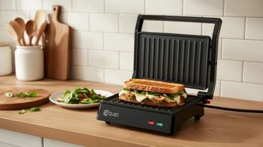 Grilla läckra paninis och smörgåsar med den 1000W Equip paninigrillen 73128. Utformad för att rymma 2 skivor, har den en non-stick-beläggning och värmeavvisande sidor för snabb, säker och enkel tillagning.Läs mer om produkten