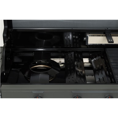Grillen har 4 huvudbrännare, 1 ringbrännare, 1 bakre brännare samt 1 sidokök