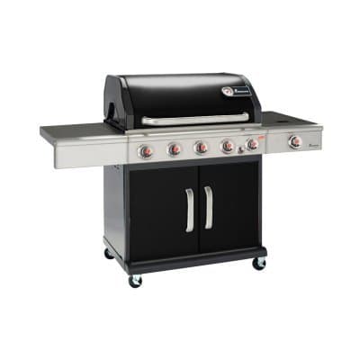 Med kokplatta för tillagning av rätter i stekpanna och kastrull. Infraröd bakre brännare (3,5kW) som kommer till sin absoluta rätt om ett roterande grillspett (art. 13050) köps till som tillbehör. Med elektronisk impulständning. LED-belysning i vreden. Försänkt inbyggd kokplatta (3,0kW). Easy to clean-system.