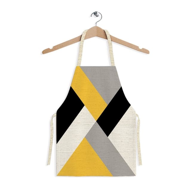Stilren design: Det ins-inspirerade moderna minimalistiska geometriska trycket på detta förkläde ger en touch av modern stil till alla miljöer. Dess iögonfallande design gör det till en fashionabel accessoar för konststudior, förskolor och kök. De geometriska mönstren är visuellt tilltalande och kompletterar en mängd olika inredningsstilar. Förklädets estetiska tilltal gör det till en fantastisk present till konstnärer, lärare och hemmakockar som uppskattar både funktionalitet och stil. De livfulla färgerna och rena linjerna i trycket skapar en glad och inbjudande atmosfär, vilket förbättrar den totala upplevelsen av matlagning, målning eller hantverk. Detta förkläde är en perfekt blandning av praktiska egenskaper och modern design.