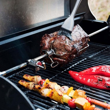 Rotesseri är ett roterande grillspett som passar gasolgrillar med 3 brännare.