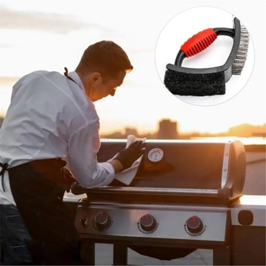 3-i-1 grillrengöringsborste ståltråd / koppartråd BBQ-borste skursvampskrapa - ståltrådsborste