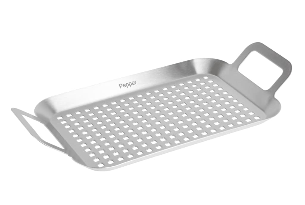 Pepper - Grillbricka - 35 x 19 cmBricka i slitstarkt rostfritt stål att använda vid grillning, när du vill undvika att livsmedel glider ner mellan grillgallren eller fastnar på dem.Läs mer om produkten