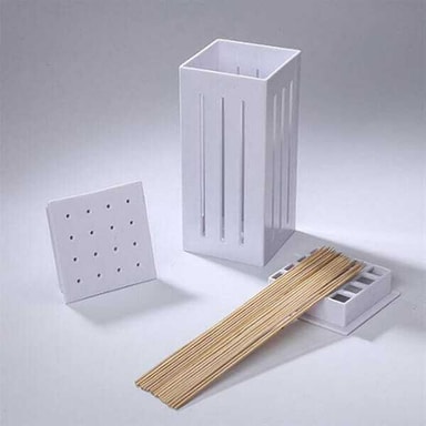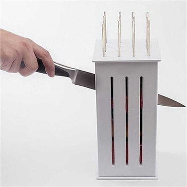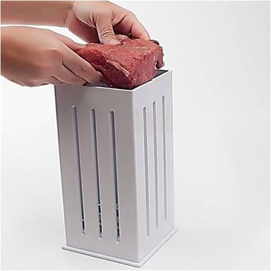 Med Grillspett Express Maker kan du snabbt och enkelt fixa 16 grillspett på en gång. Slipp besväret med att tärna upp varje ingrediens separat. Fyll lådan med lager av kött och grönsaker, trä i dina grillspett och skär ut perfekta spett med en vass kniv. Varje gång får du 16 perfekta grillspett, redo för grillen.