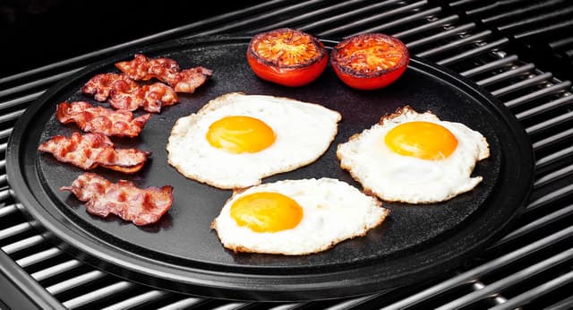 Denna runda stekplatta passar alla typer av kolgrillar och gasgrillar, och är utmärkt för pizza, ägg, bacon, kött, fisk och grönsaker.