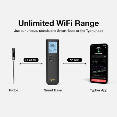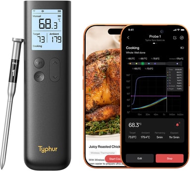 Tillsammans med Typhur-appen får användare tillgång till temperaturgrafer, detaljerade tillagningsguider, receptfunktioner och smarta larm för fullständig kontroll över matlagningen.