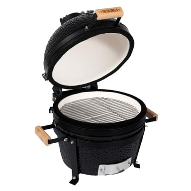 Dess kompakta storlek gör den idealisk för mindre utomhusutrymmen eller äventyr på språng som campingutflykter, utan att kompromissa med matlagningsytan. Tillverkad för att tåla elementen, säkerställer den hållbara keramiska kroppen och de rostfria ståldelarna lång livslängd och enkel underhåll, medan dess eleganta äggformade design ger en touch av elegans till den utomhusmiljön.