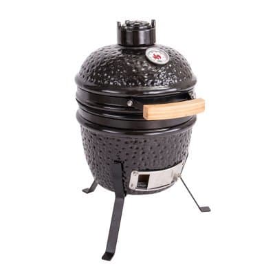 Kan användas för direktgrillning där maten lagas direkt över glödbädden. En häftig kamadogrill i miniatyrformat. Tillverkad av kraftig keramik. Med ett emaljerat grillgaller och syreventil i rostfritt stål på grillskålen. På locket sitter en gedigen gjutjärnsventil för värmekontroll, samt en termometer.