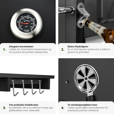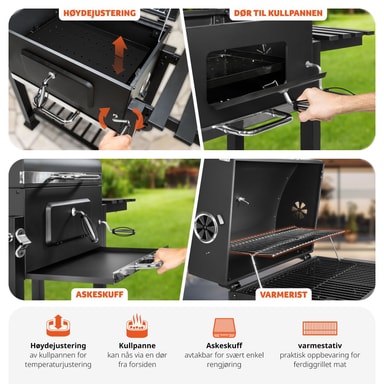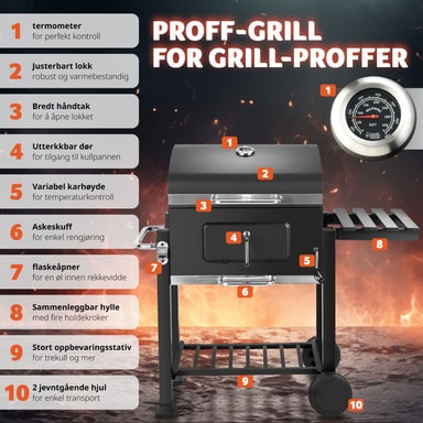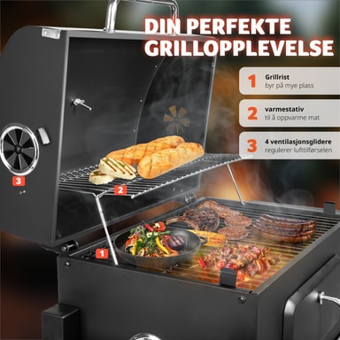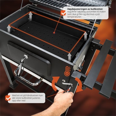 Vill du starta grillsäsongen med en raffinerad träkolsgrill? Tectakes professionella träkolsgrill Felix är en äkta sensation med många smarta extrafunktioner. Grillens nedfällbara sidobordet fungerar inte bara som förvaringsyta för dina ingredienser, det har också praktiska krokar på sidan så att du alltid har grilltången nära till hands. Tack vare termometern behöver du aldrig mer missa den perfekta tillagningsgraden. Träkolsgrillen har dessutom en extremt stor värmeyta. Grilltemperaturen kan justeras, eftersom höjden på den stora träkolsbaljan kan justeras med hjälp av en vev. Under träkolsbaljan finns en asklåda som gör rengöringen väldigt enkel. Klicka hem din nya kolgrill redan idag från Tectake.