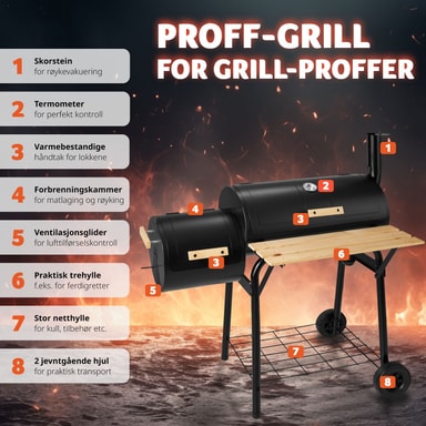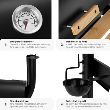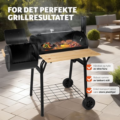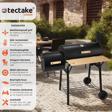 Denna kolgrill från Tectake kan användas till BBQ av fisk, kött, grönsaker eller fågel – grillen och erbjuder oanade möjligheter och nya smakupplevelser. Genom de 2 skilda kärlen kan du grilla eller röka direkt eller indirekt. En termometer på ovansidan visar temperaturen, som kan regleras exakt med de tillgängliga luftöppningarna. Uppsamlingsskålen under kolgrillen fångar upp det avrinnande stekspadet och gör att du efter önskemål kan hälla saften över köttet igen. Den enkla och flexibla användningen av vår kolgrill garanterar en riktigt trevlig grillupplevelse, visa upp dina grannar och vem som är BBQ-master.
