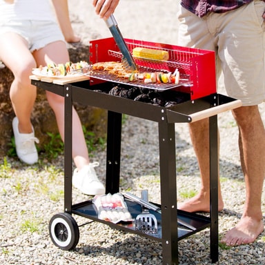 Med den portabla kolgrill från Tectake är du redo för nästa grillparty. I trädgården, på stranden eller campingen. Extra praktiska är de båda förvaringsytorna på sidan av trä och undertill av metall. Där har du alla tillbehör lätt till hands inför din BBQ. Ett stort grillgaller erbjuder mycket utrymme för läckra grillspecialiteter. Dessutom har kolgrillen en varmhållningskorg. Där kan du lägga undan det som är färdiggrillat eller använda för långsam tillagning av grönsaker eller fisk. Kolgrillen är mobil med två hjul och kan flyttas runt som du önskar. Bli en BBQ-master och beställ redan idag denna praktiska kolgrill från tectake.